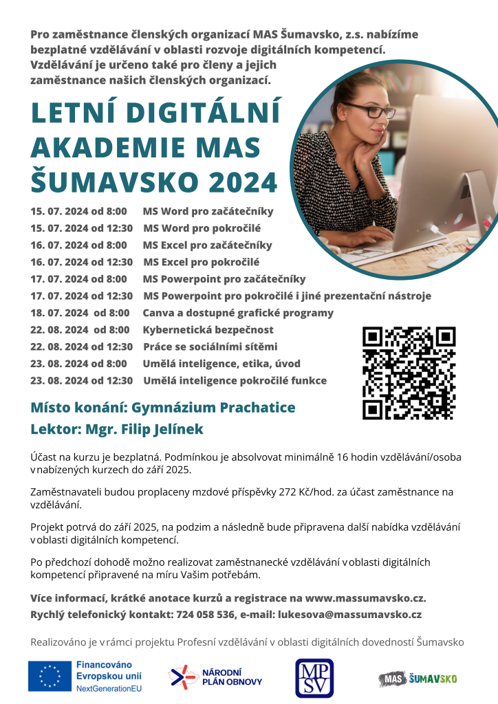 Pro zaměstnance členských organizací MAS Šumavsko, z.s. nabízíme bezplatné vzdělávání v oblasti rozvoje digitálních kompetencí.